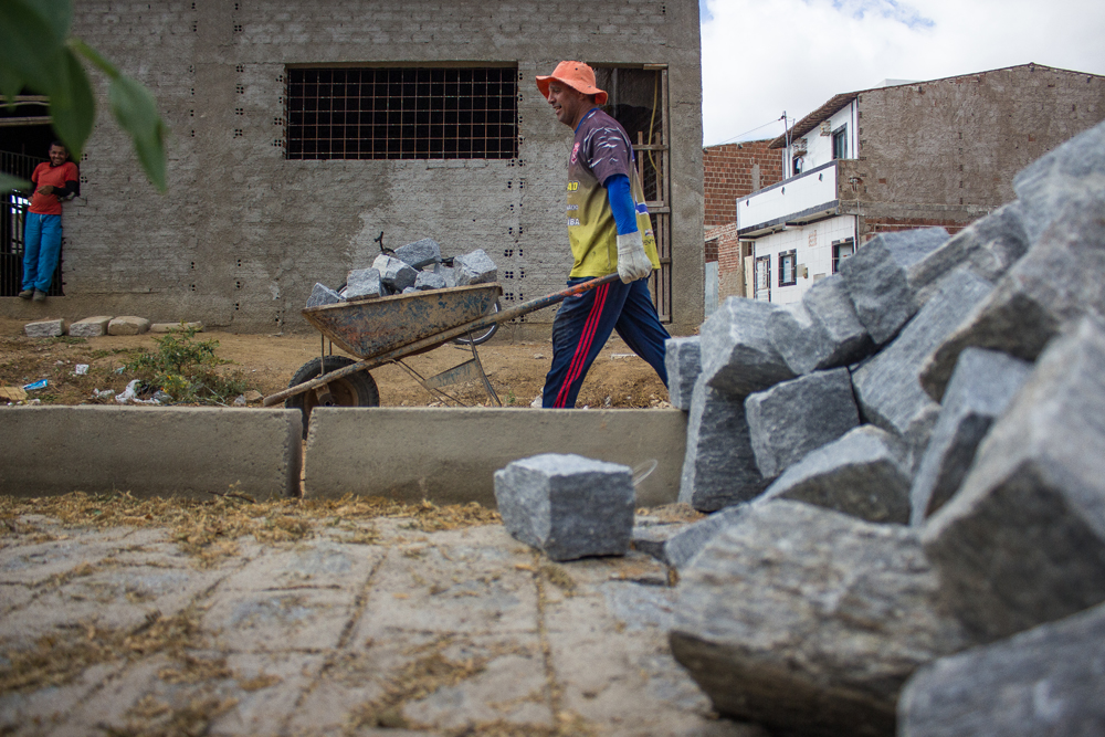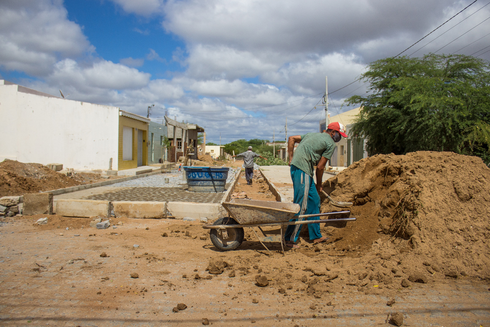As imagens ao lado são da Rua Emídio Lucas da Silva e lá as obras estão a todo vapor.