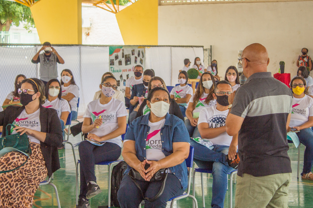 Aconteceu ontem na quadra da escola municipal de ensino fundamental a II Jornada Pedagógica e Formação Continuada para Professores da Rede Municipal, cujo tema era "Descortinando a sala de aula em tempos de pandemia".