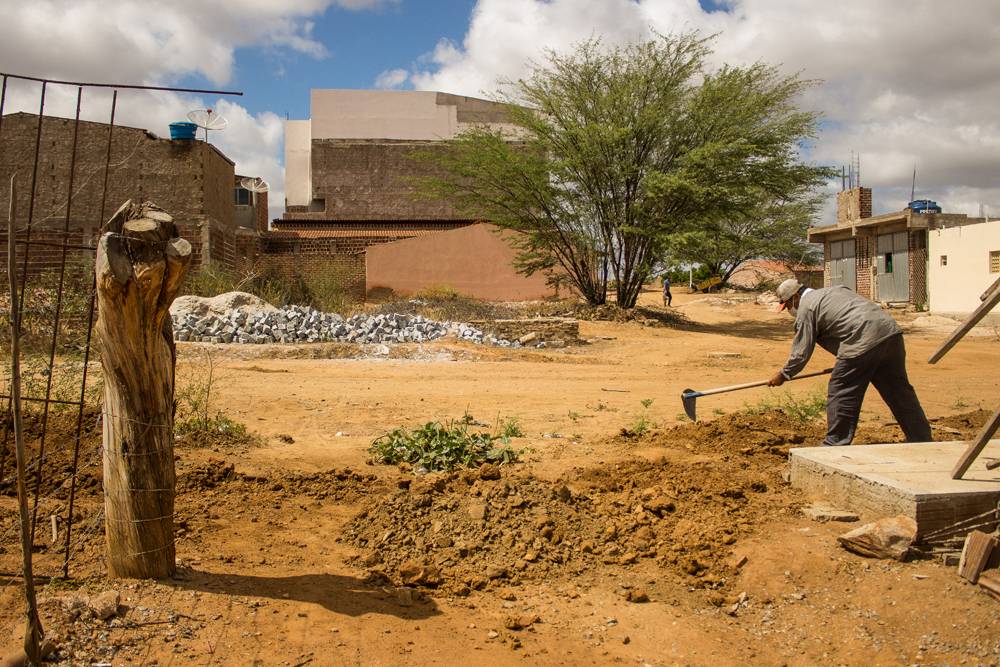 As imagens ao lado são da Rua Emídio Lucas da Silva e lá as obras estão a todo vapor.