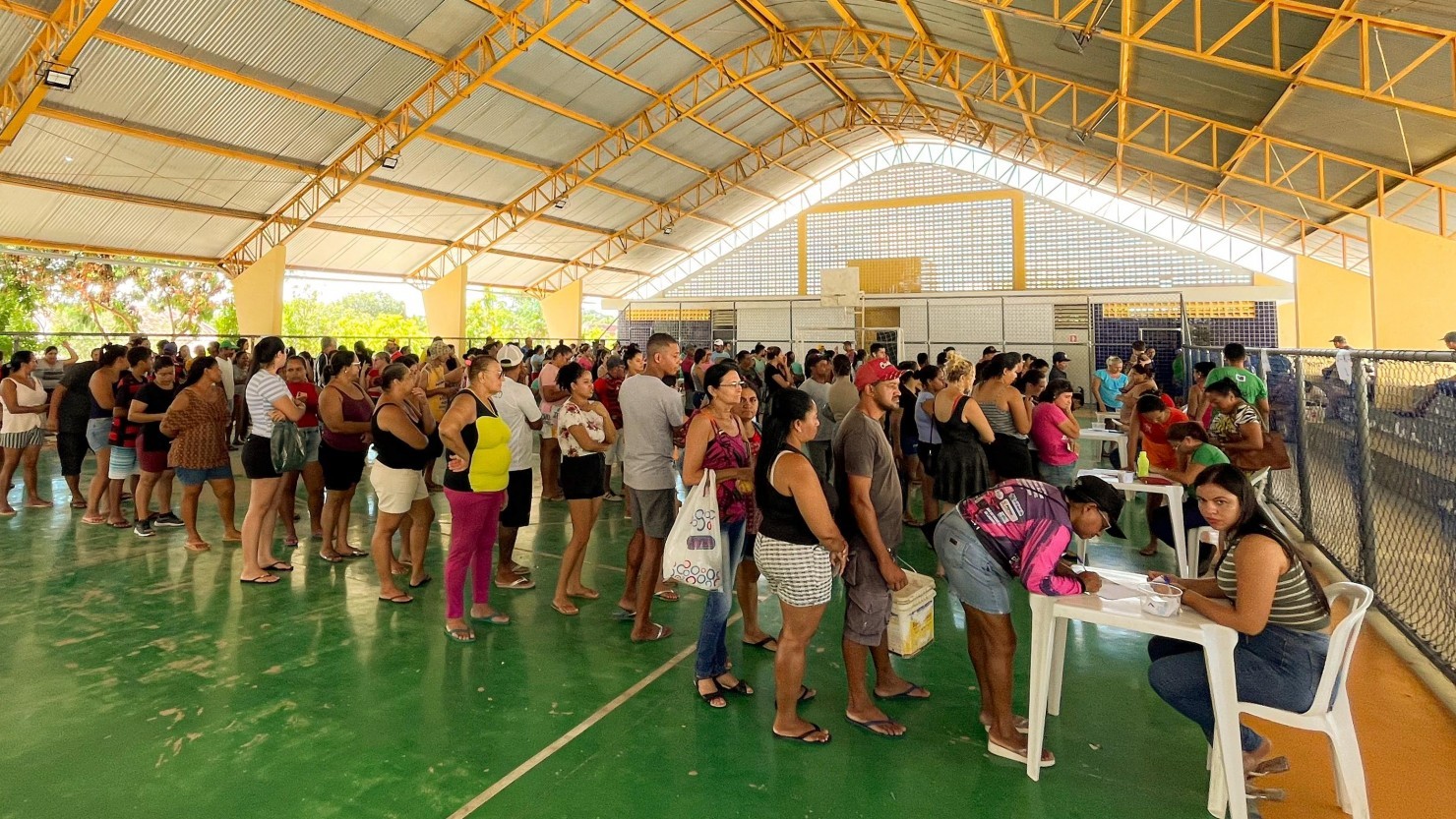 A distribuição que aconteceu na quadra da Escola Municipal, disponibilizou aos beneficiários do bolsa família 1.470 quilos de peixe, coentro e cebola.